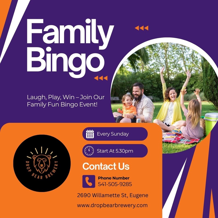 #FamilyBingo #DropBearBrewery #SundayFunday #TyConnorBingo #BingoNight #FamilyFun #LocalEvents #eugeneoregon